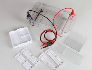 1 .槽体采用高强度高透明度聚碳酸脂材料注塑成型,免除液体渗漏、便于观察电泳进程。