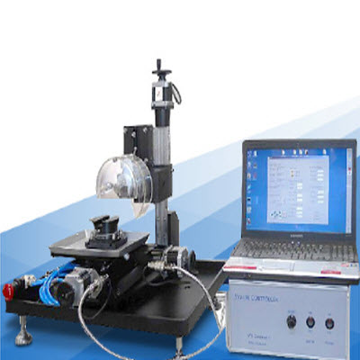 EC-400型划片切割机的设计,是根据美国制造的精密计算机化铣磨机改造而成。其主电机、变速箱、丝杠、手轮、导滑轨、步进电机均为美国原装产品。它可用于划片和切割各种材料,深度达到1英寸。EC-400是完全计算机化控制的,精度可达到0.01毫米,并提供一套完整的MTI操作软件,可用486电脑控制本机,允许用户自己编制程序,进行自动切割。样品工作台可360°旋转,并配有十字夹具(90°定位模)、真空吸盘。加工精度高,程序设置灵活多样,操作简单。