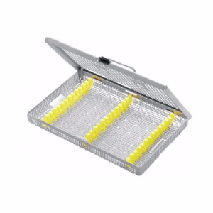 描述:与牙科灭菌盒JN092匹配,带三层器械固定支架(JG391),带篮盖提手,外围尺寸