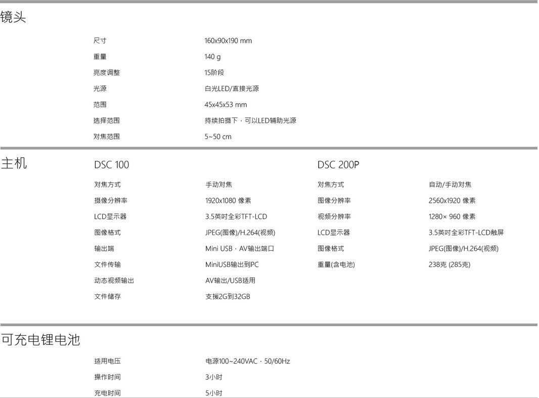 赫罗斯Miis 数位内视镜组技术参数: