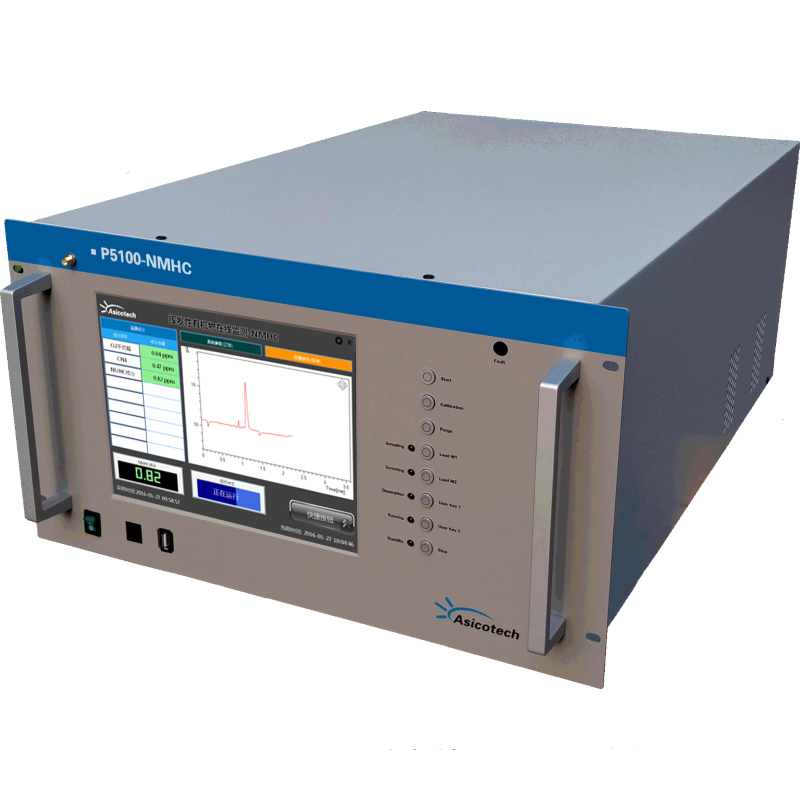 Asicotech提供两种甲烷/非甲烷总烃在线气相色谱分析仪:NMHC I型和NMHC II型。NMHC II型使用差值法,从测量TVOC(总烃)浓度中减去测量的CH4浓度得到NMCH(非甲烷总烃)的浓度,以此来反应环境大气中烃类的浓度。系统装有内部样品采样泵,定量管,进样阀和色谱柱。该方法基本符合国标HJ/T38-1999,所有计算都由内部计算机自动完成。在分析NMHC的基础上,该仪器可以扩展到同时分析三苯、六苯等苯系物u。