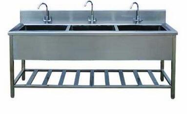 三槽,配冷热水混合水龙头,不配进水阀,下带板条.