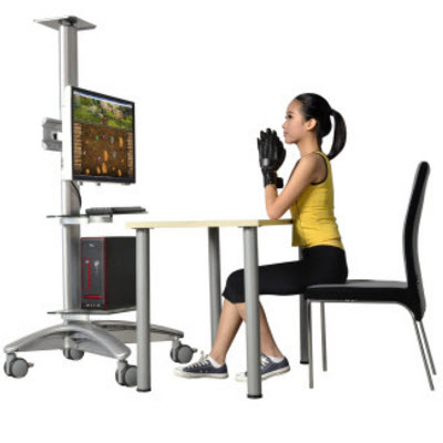 手功能训练与评估系统是根据康复医学理论、人机合作机器人原理及计算机虚拟技术,实时模拟人体手指与手腕运动规律,具有手指与手腕活动范围评估系统、康复训练系统、训练信息反馈系统等。患者可以在计算机虚拟环境中完成手指与手腕的康复训练。