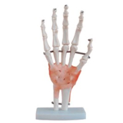 产品说明:这款模型显示手部解剖结构,可展示各种手功能。包含可弯曲的人工韧带。自然大,有底座。