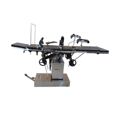 侧面操纵式综合手术台供医院手术室施行普外、心肾、骨科、神经外科、妇科、泌尿科等手术。采用油泵升降,手术时所需体位调整均在台面两侧操作。