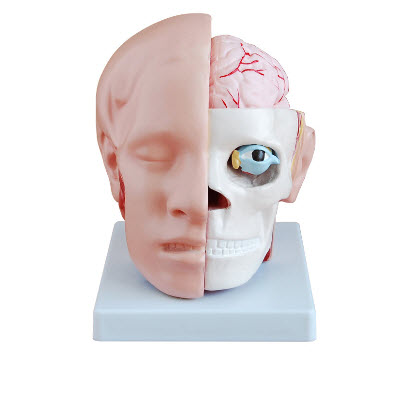 该模型展示了人体头部特征,包括头颅骨内的大脑结构。自然大,分为10个部分。