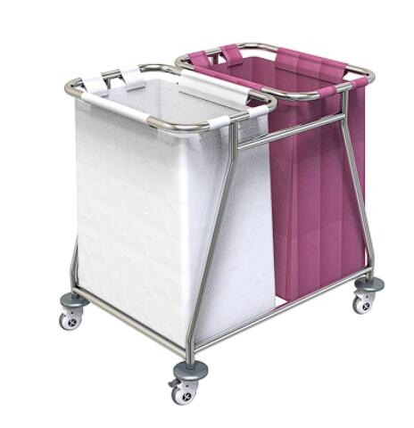 2、材质:污衣袋车主体框架为不锈钢材质;污衣袋材质为防水布料;