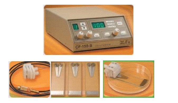 CF-150B胚胎细胞融合仪和相关电极槽(GSS-250)专为哺乳动物胚胎分裂球电融合而设计,可在电解液或非电解液中运用。一个适当导向的短电脉冲施加在早期胚胎可以溶解细胞膜,从而完成细胞质和细胞核融合。此仪器的主要应用是产生小鼠四倍体胚胎产生和体细胞核转移克隆。标准的双细胞分裂期胚胎能够迅速地融入单个细胞(单细胞分裂期四倍体胚胎)。这种四倍体胚胎可用于与遗传控制小鼠胚胎干细胞(ES)聚合,从而产生完全的ES衍生细胞胎儿(Nagyetal.,1990;NagyandRossant;1993)。