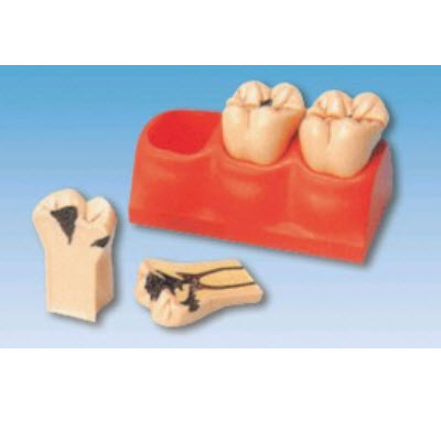 该模型由 3个磨牙剖面 6个部件组成,并显示磨牙的形态和构造以及龋齿病变发展过程等结构,共有10个部位指示标志。