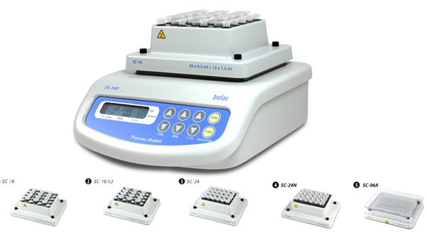 TS-100恒温摇床提供了在微型管或PCR板中样品精细的混合以及温度控制。加热和混合功能能够同时或者独立的进行。比如:仪器可以执行以下3个设备功能于一体: