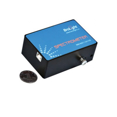 BIM-60 系列光纤光谱仪采用通用的光机平台,尺寸只有名片大小,非常方便携带。优化的光路设计使光学分辨率高达0.5nm-1.5nm。用户通过选择不同的光栅配置可以获得不同的光学分辨率和光谱响应范围。为了满足不同的需求,我们提供波长响应范围为300nm-1100nm 和200nm-1000nm 的探测器供用户选择。