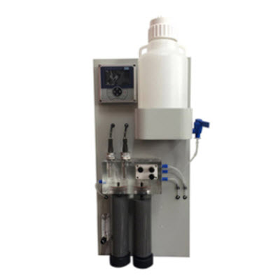 整套仪器由计算型pH测量仪表、不锈钢电导电极、流通池、离子交换柱、阀门、再生系统以及相应的管路组成,整套系统集中在一块不锈钢面板上。