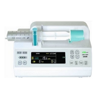 (JZB-1800)主要性能 1、通过标定,能使用任何厂家生产的符合国家标准的注射器,并能精确地控制注射流量和监控注射过程 2、能自动识别一次性注射器规格 3、具有三类工作模式:速度模式、定时模式、体重模式 4、具有注射器规格识别及显示、注射器参数标定、注射速度设置及显示、预注射总量设置、已注射量显示、已注射量清零操作、快速注射控制、声光报警提示、阻塞压力设置及显示、报警音量设置及显示、电源及电量显示等功能 5、可根据临床需要选择三档阻塞报警声音(高、中、低) 6、可根据临床需要选择三档阻塞报警压力(高、中、低),并动态地显示注射器压力 7、当设置容量注射完成或注射器空时,注射泵自动进入KVO(保持血管畅通)状态 8、超大屏幕全中文彩色液晶显示器 9、两种供电工作方式:市电供电和内置可充电电池供电