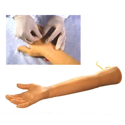 完全仿真的老年手臂,绝对独一无二的视觉和手感,皮肤菲薄,血管若隐若现。当学生用此进行穿刺练习时,能够培养他们对老年病人充满爱心,并在临床工作中具有充分的耐心。