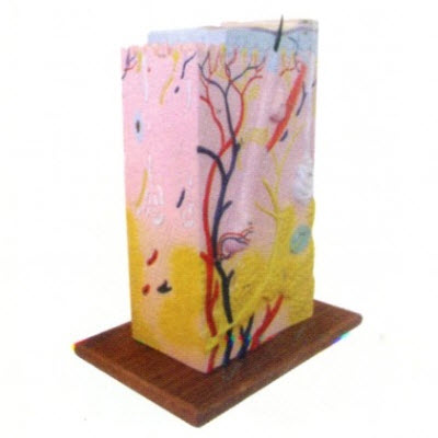 BM2037皮肤立体结构模型显示了三层皮肤、头发毛囊、汗腺、脂肪组织等。